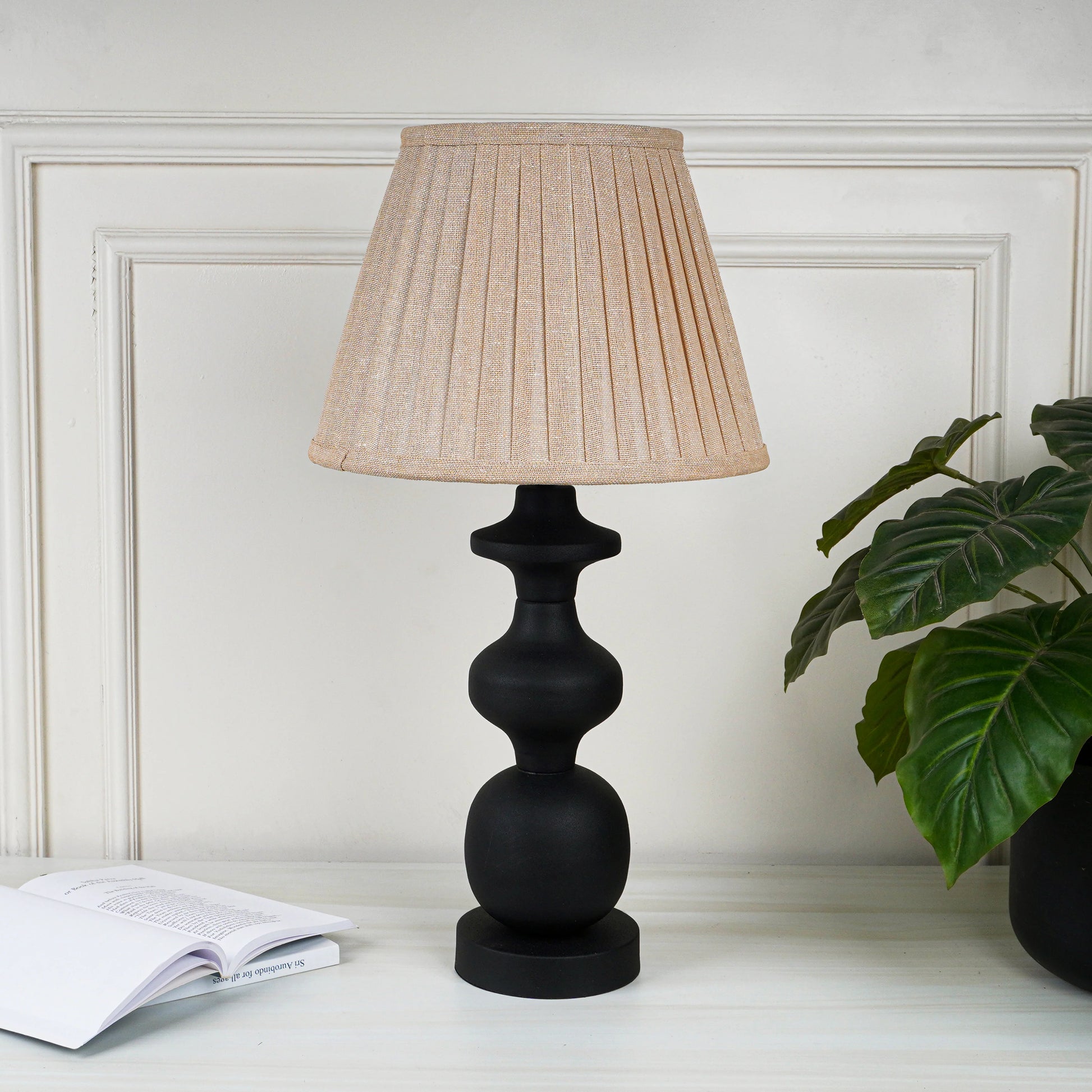 The Alden Black Metal Table Lamp is where Art Deco charm meets modern flair—with a dash of personality Part of our Bayfield collection, it brings a calm and collected presence to your space. Part of our Bayfield collection, it brings a calm and collected presence to your space. Its sleek black baluster base, powder-coated to perfection, pairs well with an ivory linen shade, that’s as soft as its glow. Whether gracing a bedside or a console, this lamp adds just the right amount of elegance to your space. E27 BULB Length