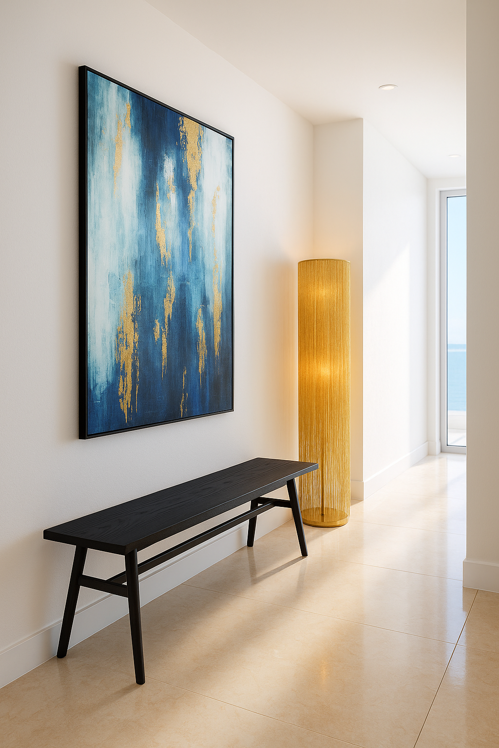 Whether styled in a modern coastal home, paired with minimalist interiors, or as part of a gallery wall, the Aurore adds a sophisticated splash of colour and texture.