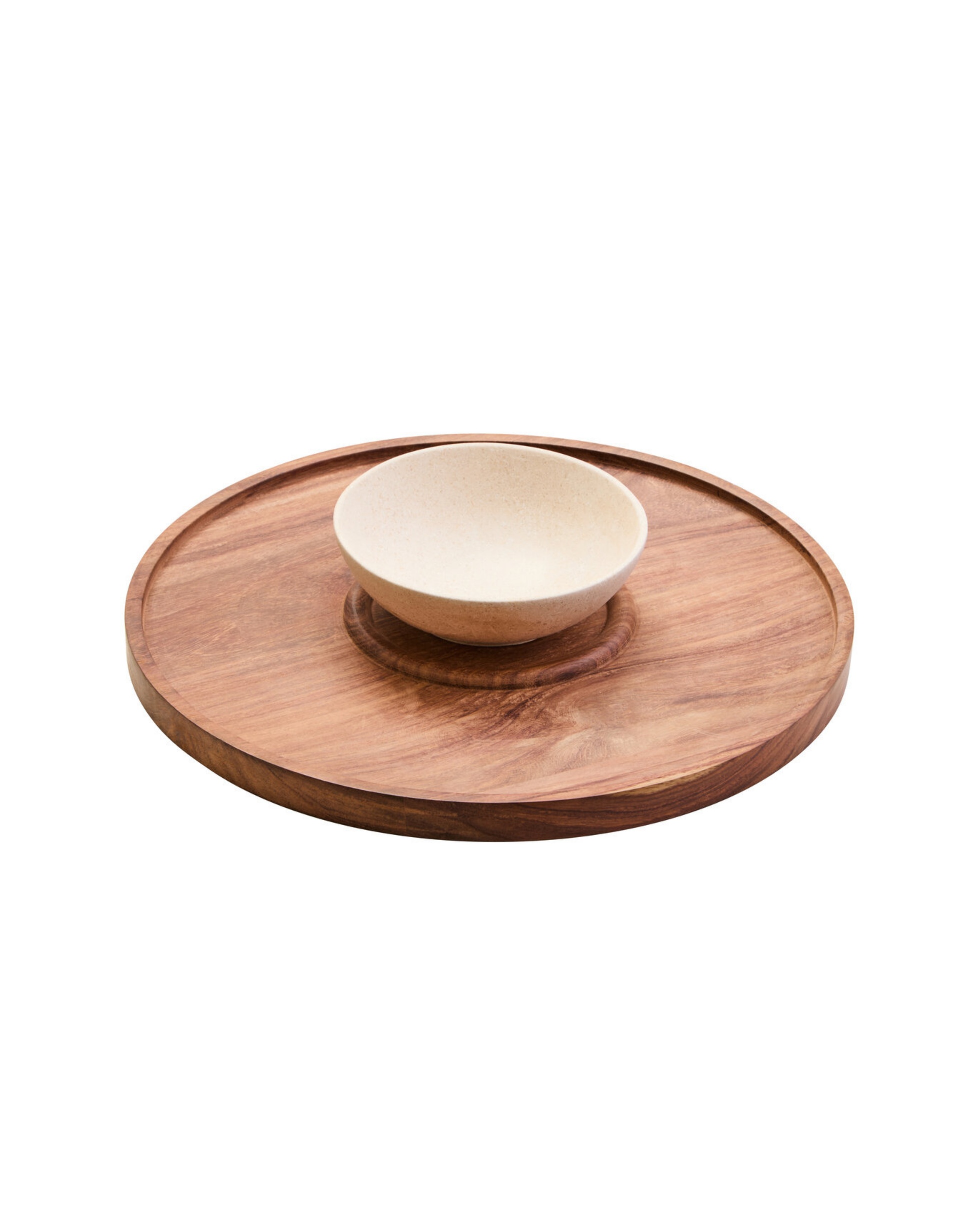 Casia Chip & Dip Server - Cream Marble & Acacia Wood