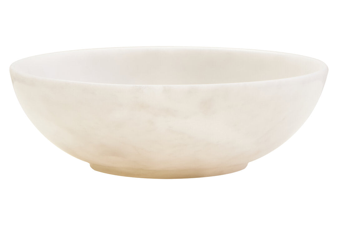 Softly shaped from smooth white marble, this elegant bowl introduces a refined, sculptural presence to contemporary interiors. The natural veining brings gentle texture and depth, adding a serene layer to luxury home decor while maintaining a clean, minimalist silhouette. Its cool, polished finish pairs beautifully with designer furniture and modern living room ideas, offering a subtle yet elevated accent for coffee tables, shelving, or curated styling moments. Calm, tactile, and effortlessly sophisticated, it enhances any space with quiet refinement.