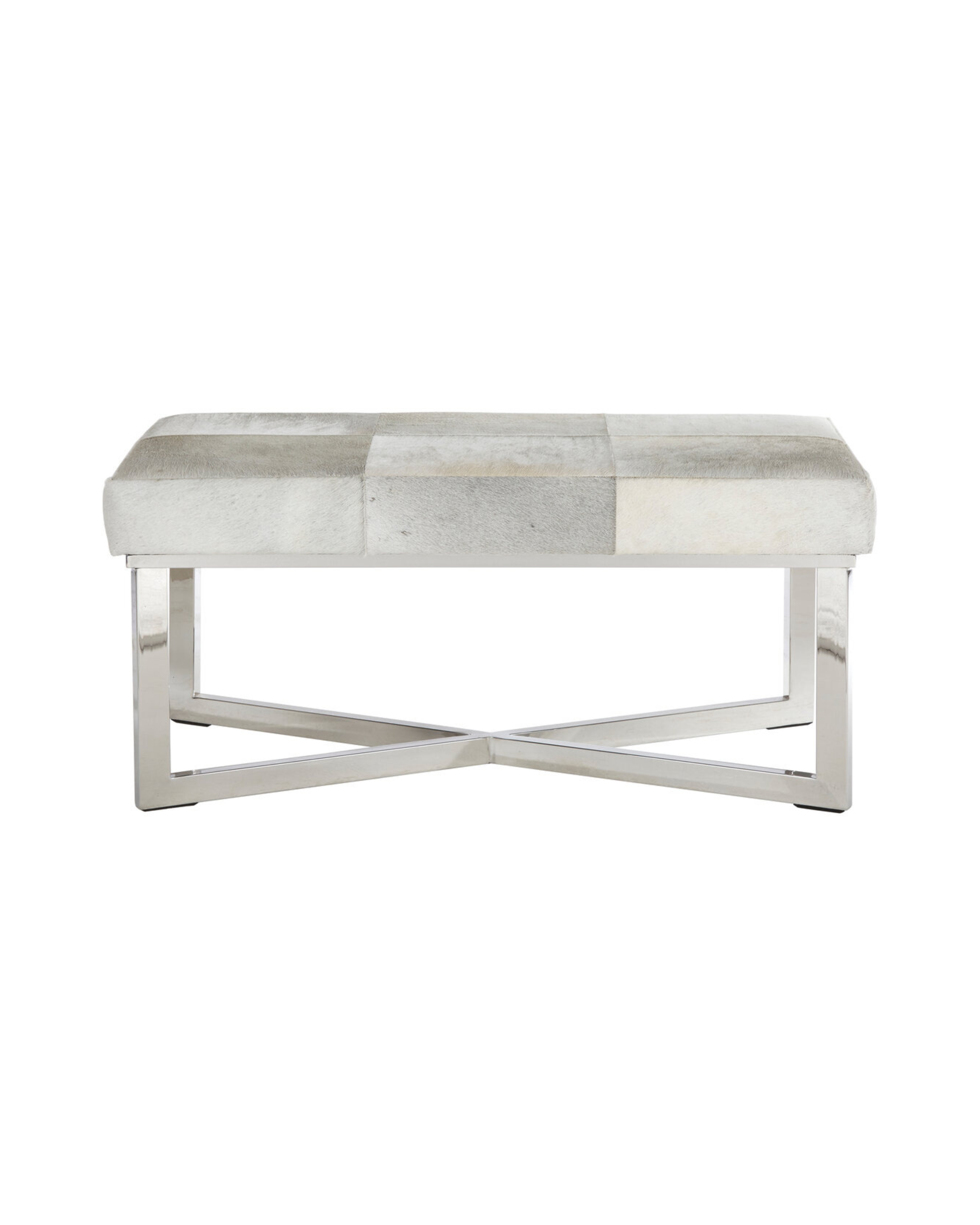 Pimlico Leather Bench - Grey & Polished Silver