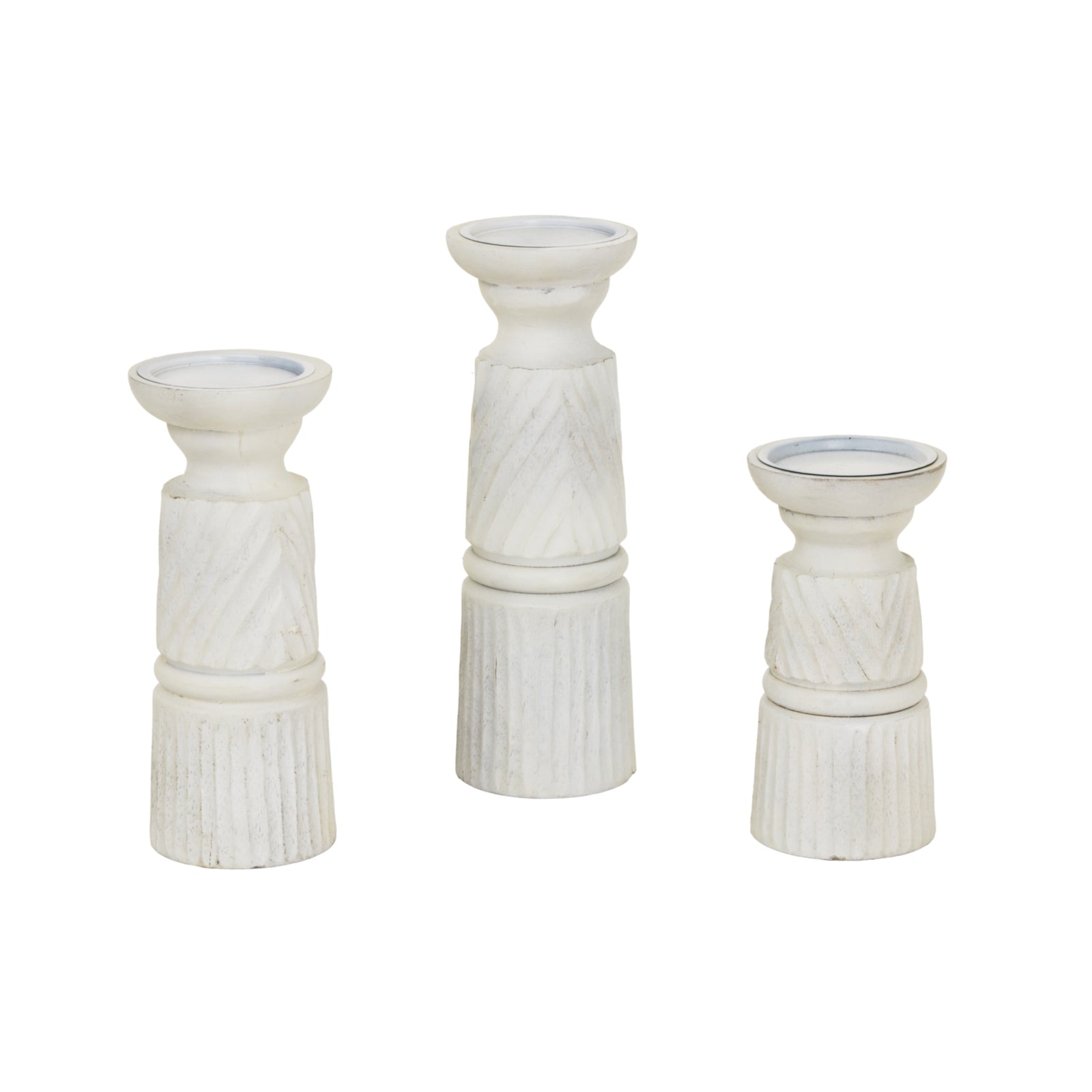 Prelude White Carved Candle Holder - Large