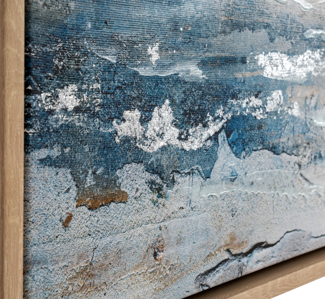 The Sutton Hand Painted Canvas captures the beauty of abstract movement through layered, tonal brushwork. Framed in natural wood, its sweeping strokes and muted hues evoke quiet sophistication, offering depth and texture to contemporary interiors. A true statement of artistic serenity.