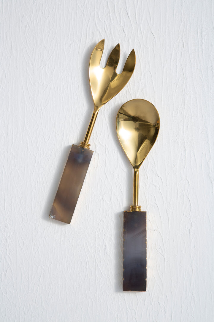 Quietly refined and beautifully crafted, this contemporary serving set brings a touch of sculptural elegance to both everyday dining and thoughtfully curated table settings. The smooth grey handles offer a soft, understated contrast to the warm gold finish, creating a harmonious balance that feels at home within luxury home decor and modern interiors. Subtle curvature and premium materials lend the pieces an artisanal quality, making them a natural complement to designer furniture and minimalist styling. Referencing the Vena Serving Set within a tablescape adds a refined layer of texture and tone, elevating the overall mood with effortless sophistication.