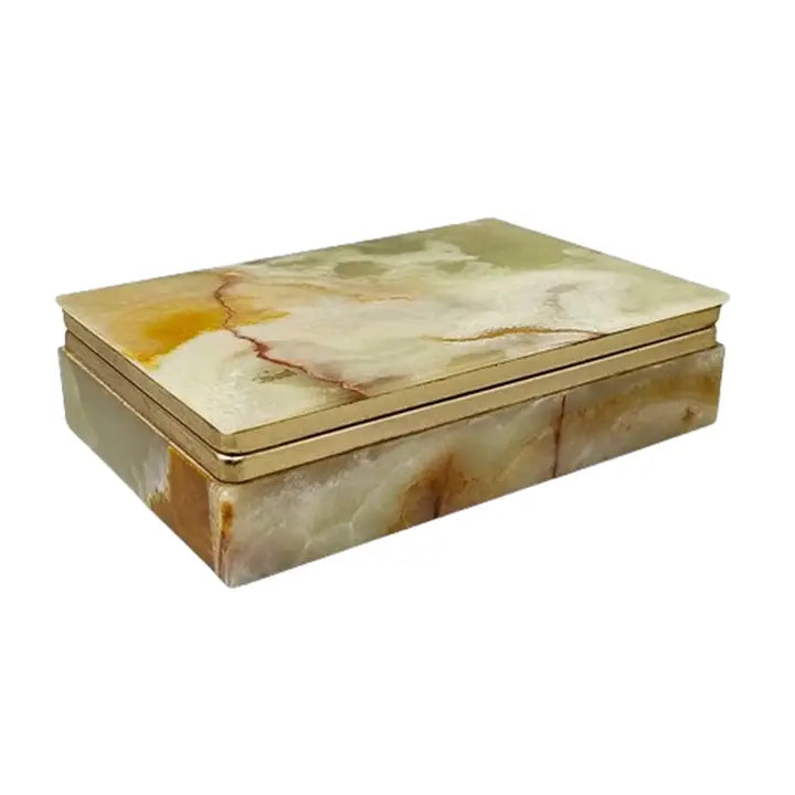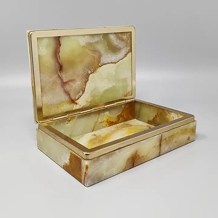A beautifully handcrafted onyx box from 1960s Italy, this piece is both functional and decorative. With its smooth finish and striking natural veining, it exudes timeless charm and sophistication. The subtle, earthy tones of the stone make it a perfect accent for a variety of interior styles.
